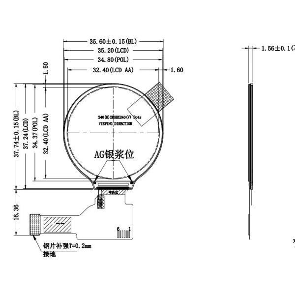 TFT LCD Display Module 1.28 Inch Mechanical Drawing